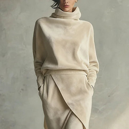 Ensemble en Velours de Couleur Unie avec Design Asymétrique